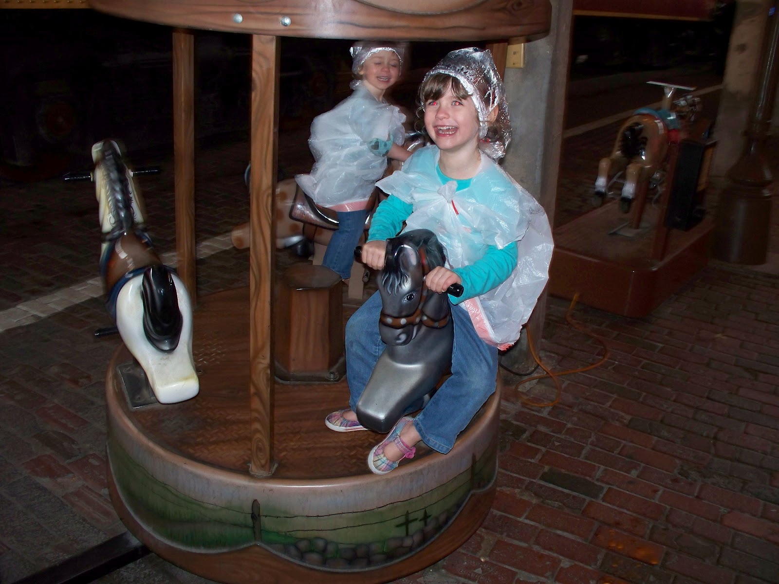 The plan was to go and see the world famous Stock Yards in Fort Worth but with the rain we had to rethink the plan. After a short discussion we decided to go there anyway. In spite of the rain we enjoyed ourselves tremendously. We didn't see much but just being with Brandon and Serene made it fun and we could have been anywhere. Grandma could help herself and she just had to give Sydney and Hayley a ride on the merry go round horses and then we happened to be there just as the cattle drive made it's way down main street and in addition to that we checked out the shops and one of the museums and took a look at the stock yards. You might also be surprised to see how six months in Texas has changed Brandon. He's gone from this well dressed business man to a country bumpkin wearing a sheep skin jacket and a cowboy hat. Actually there is a pretty cool story behind the sheep skin jacket and he is just trying on the cowboy hat in a store.